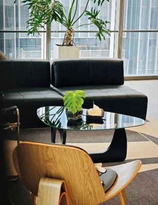 frosted glass (Western-style privacy and energy diffusion). Workstation Reconfiguration Maintained collaborative zones while installing half-height partitions to provide "back support" (Kao Shan 靠山) and mitigate visual exposure, aligning with both privacy needs and energy containment. Palette Optimization Replaced stark monochrome scheme with light wood and blue-green tones — combining the Feng Shui “Wood” element (symbolizing vitality and wealth) with calming Western aesthetics. 02 03 Outcome Project delivery rates improved by 35% within six months. Workplace satisfaction metrics rose by 50%. A global